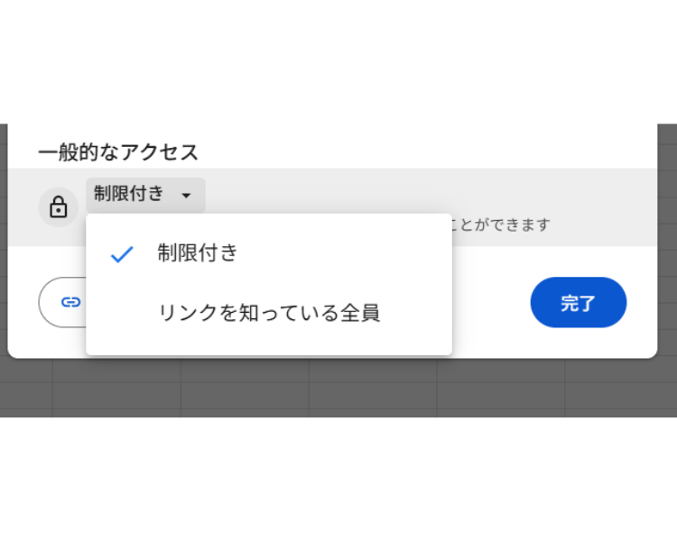 ・「制限付き」のところ「リンクを知っている全員」をクリック